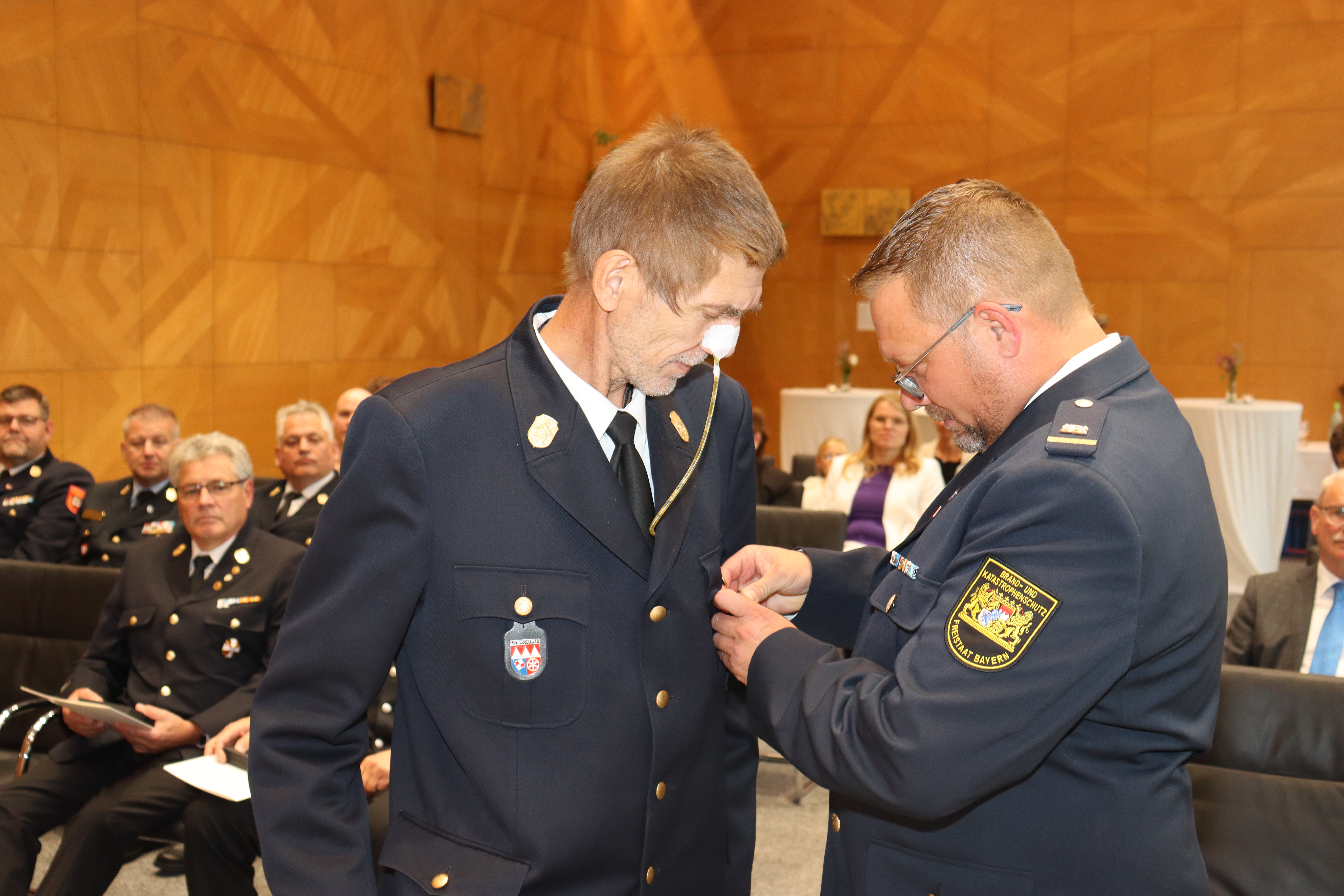 Aushändigung des Steckkreuzes für besondere Verdienste um das Feuerwehrwesen am 26. September 2025 im Großen Sitzungssaal der Regierung von Unterfranken