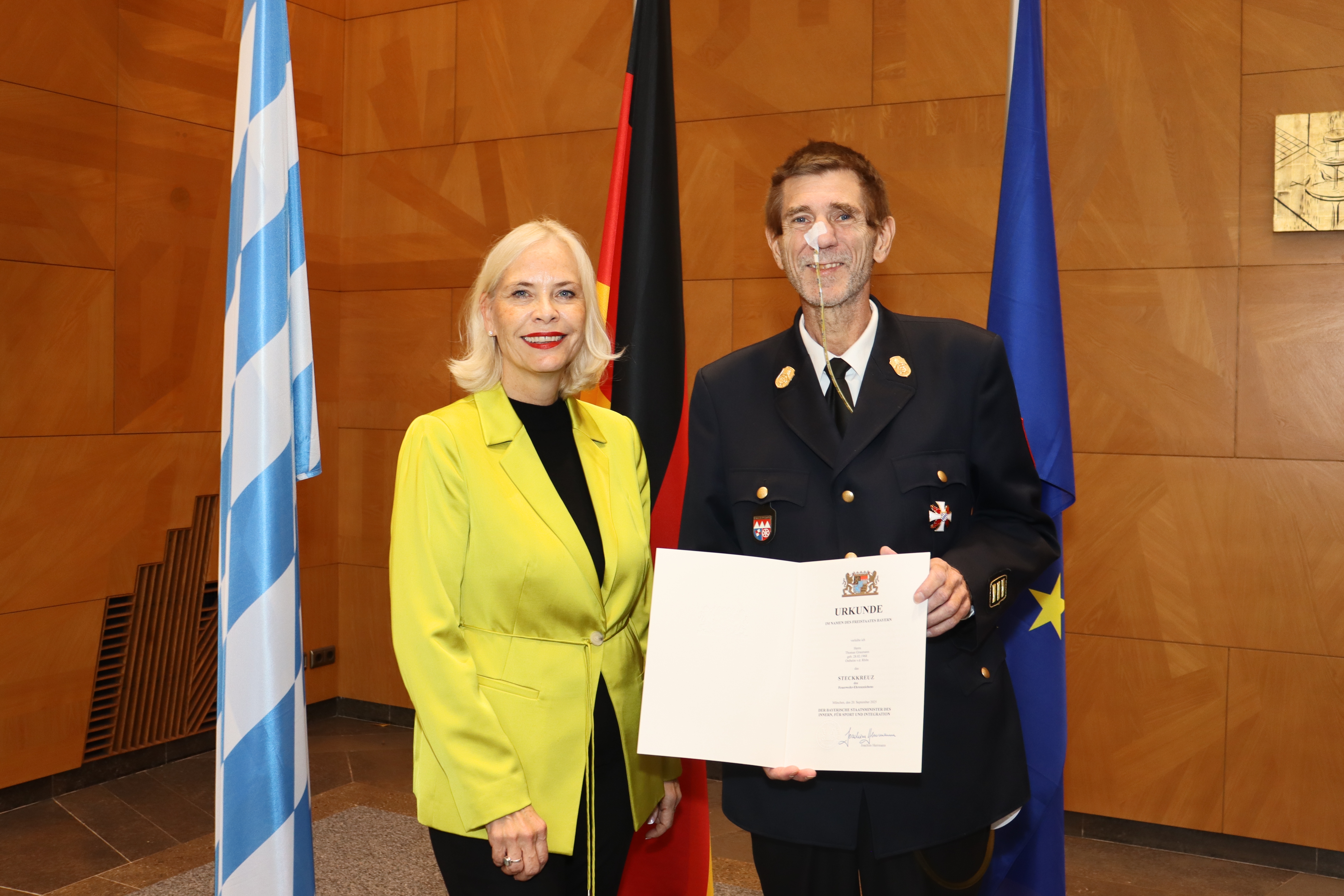 Regierungspräsidentin Dr. Susanne Weizendörfer händigte am 26. September 2025 im Großen Sitzungssaal der Regierung von Unterfranken das Steckkreuz für besondere Verdienste um das Feuerwehrwesen an folgende Personen aus: