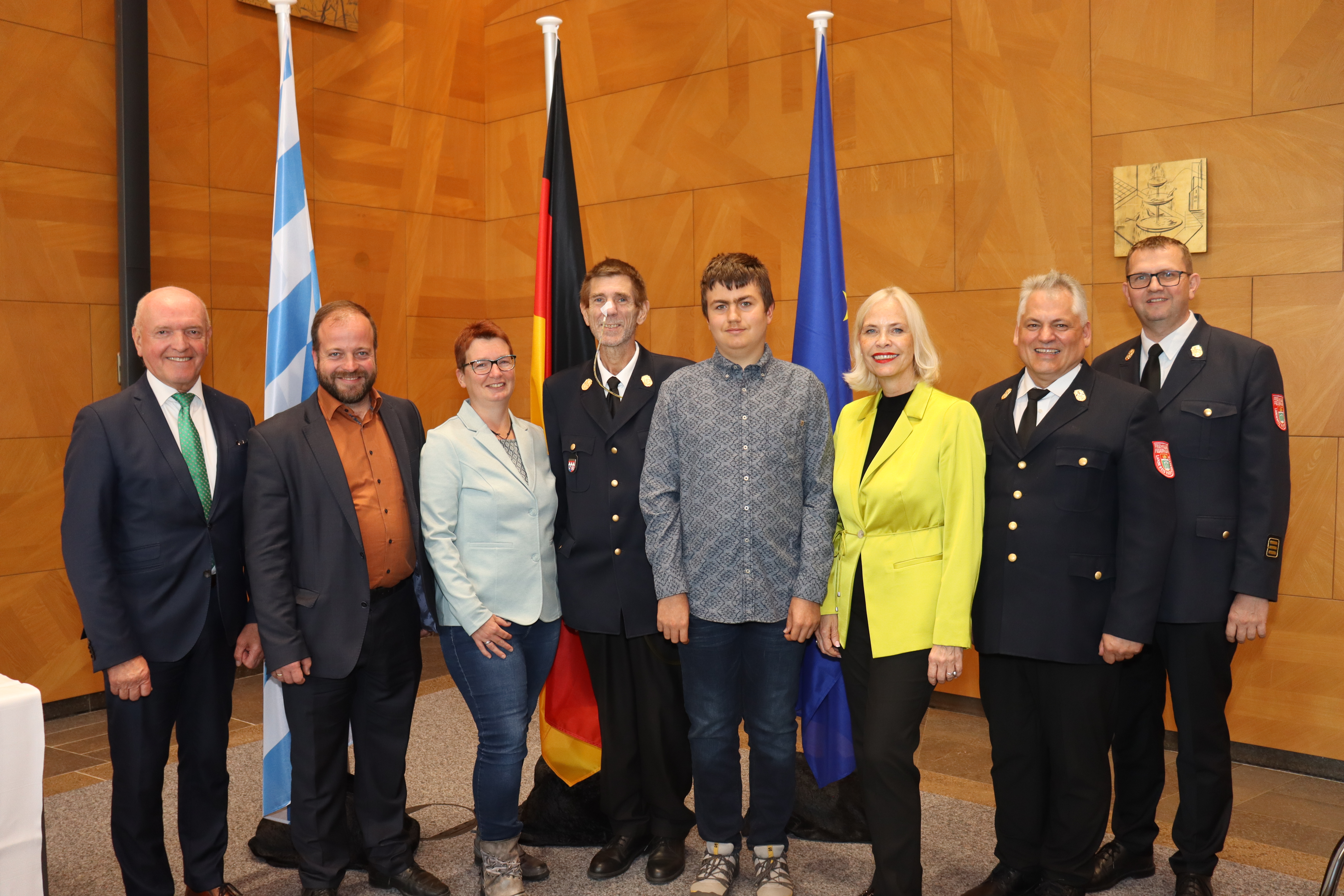 Regierungspräsident Dr. Eugen Ehmann händigte am 15. Juli 2024 in der Regierung von Unterfranken mehreren unterfränkischen Bürgerinnen und Bürgern die Bayerische Rettungsmedaille und die Medaille „Patrona Bavariae“ aus.