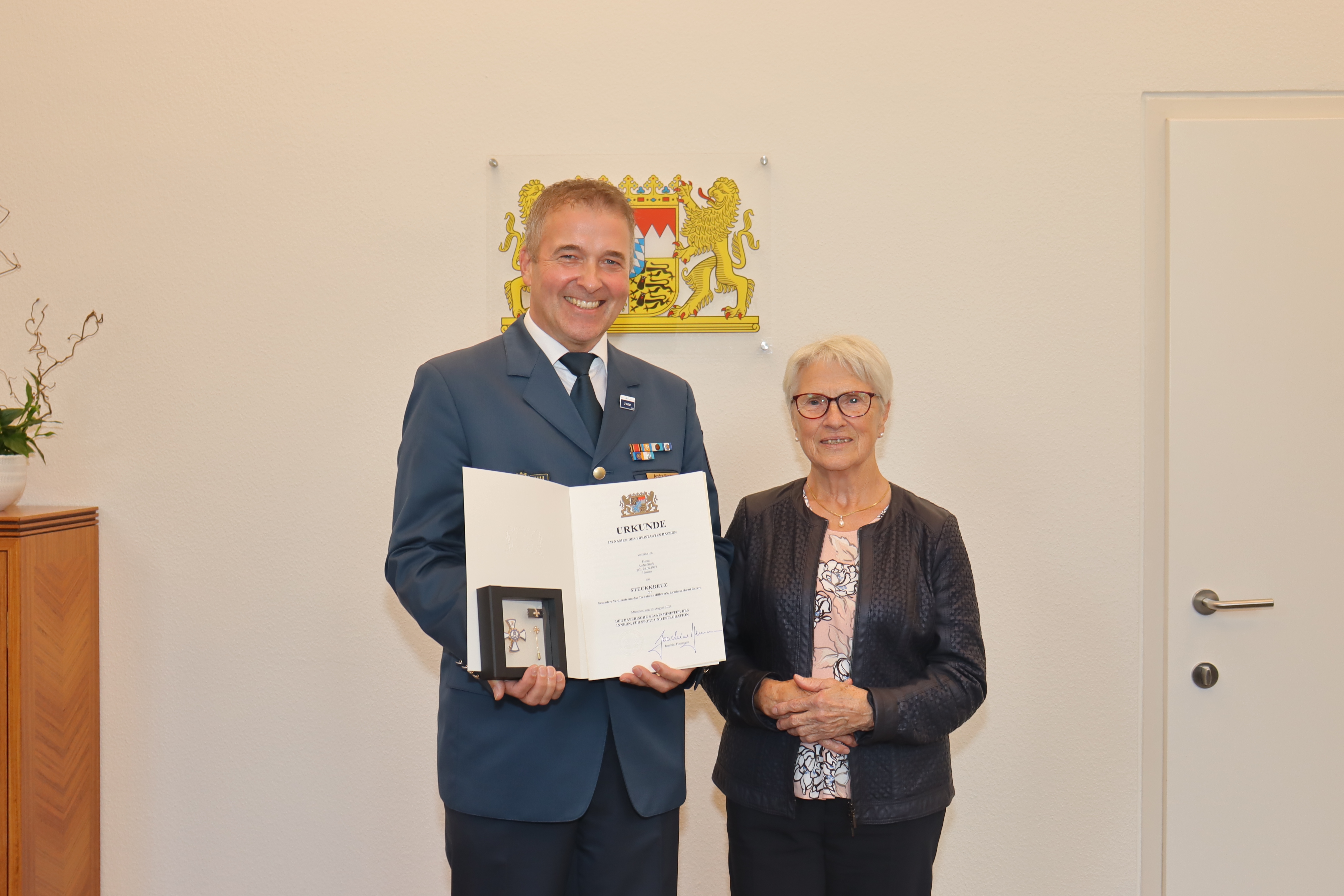 Regierungspräsidentin Dr. Susanne Weizendörfer händigte am 18. Juli 2025 im Großen Sitzungssaal der Regierung von Unterfranken das Steckkreuz für besondere Verdienste um die Deutsche Lebens-Rettungs-Gesellschaft e.V. (DLRG) an Thomas Kurewitz aus Gebrunn (Landkreis Würzburg) aus.