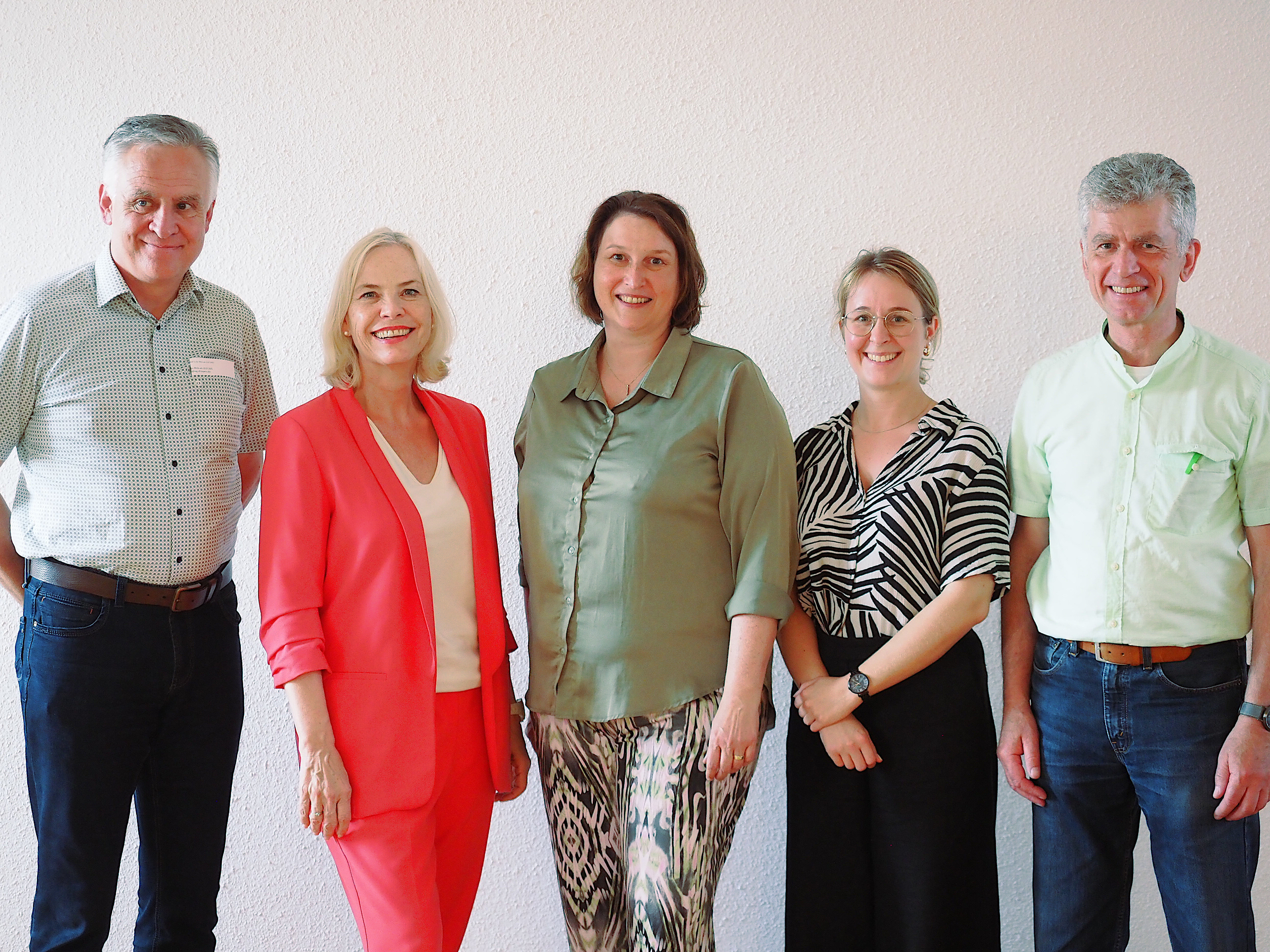Von links: Dr. Thomas Keller, Leiter Sachgebiet Naturschutz an der Regierung Unterfranken; Dr. Susanne Weizendörfer, Regierungspräsidentin von Unterfranken; Antje Voll, Leitung Biodiversitätszentrum Rhön; Dr. Jana Englmeier, Fachbetreuerin Bayerisches Staatsministerium für Umwelt und Verbraucherschutz; Bertram Eidel, Leiter Bereich Umwelt, Gesundheit und Verbraucherschutz an der Regierung von Unterfranken