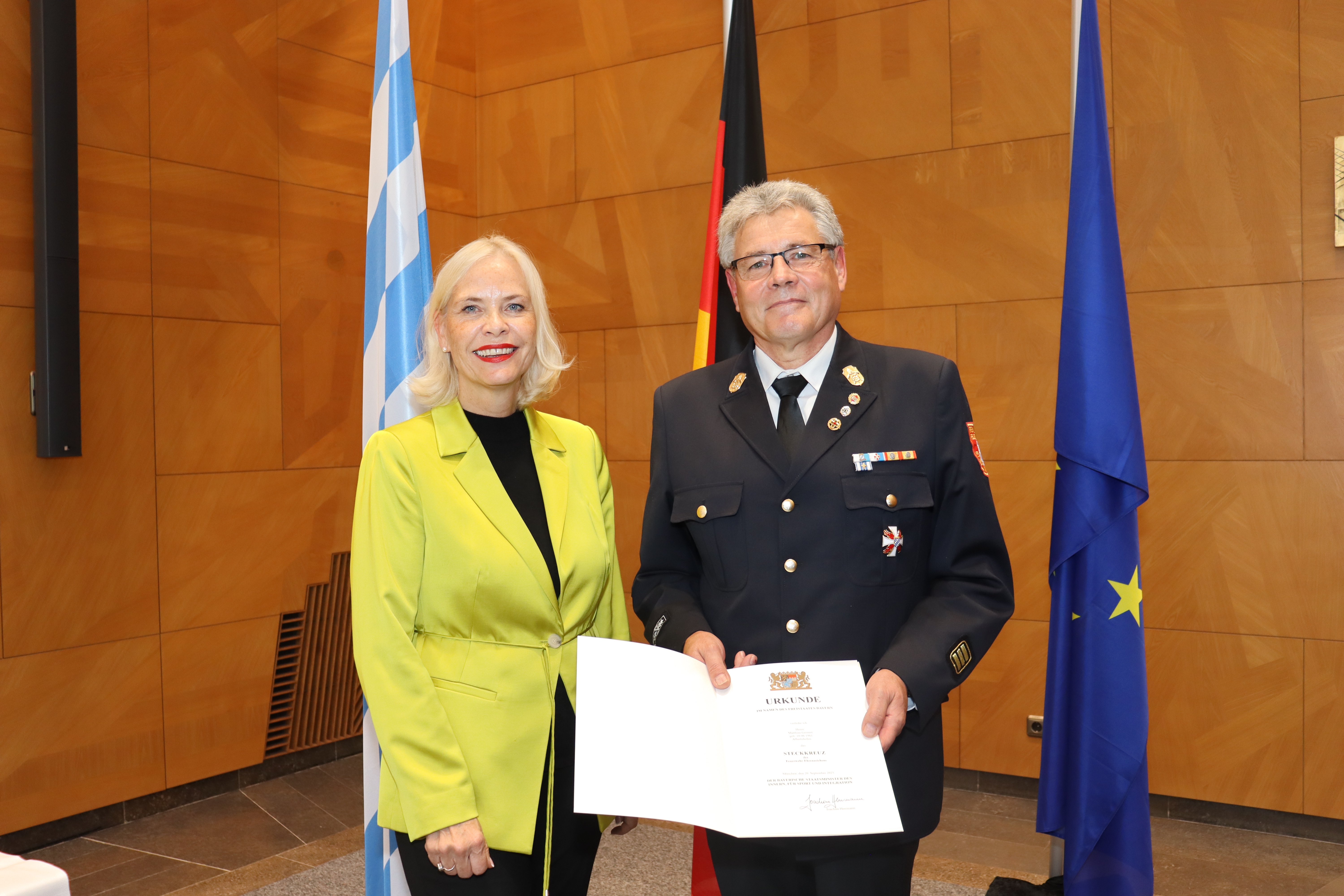 Kreisbrandinspektor Albert Klug, 63820 Elsenfeld, Landkreis Miltenberg, wurde das Steckkreuz für besondere Verdienste um das Feuerwehrwesen bereits am 20. September 2025 persönlich von Staatsminister Joachim Herrmann im Rahmen der Sitzung des Verbandsausschusses des Landesfeuerwehrverbandes Bayern e. V. in Essenbach überreicht.