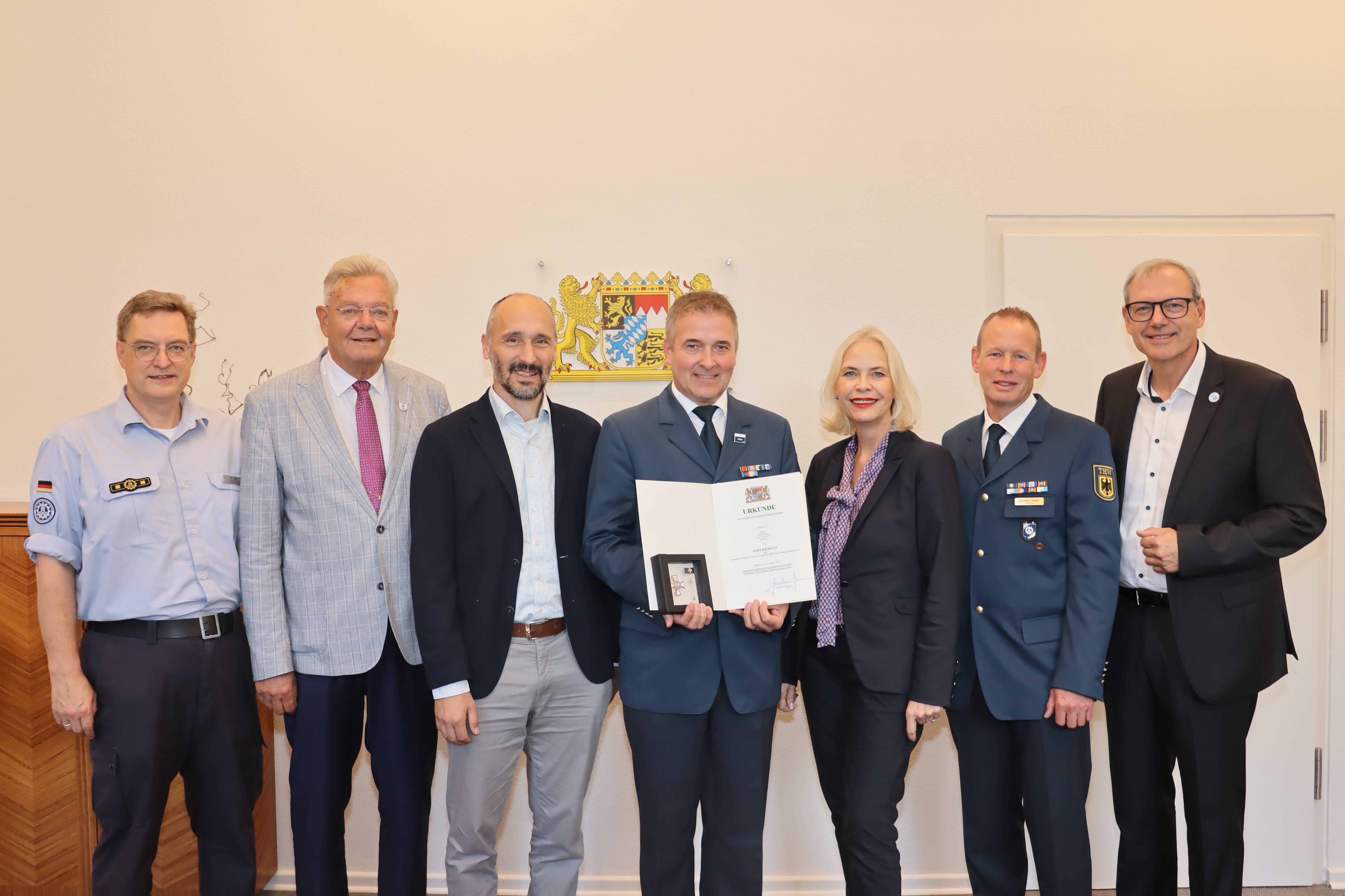 Aushändigung des Steckkreuzes für besondere Verdienste um die Deutsche Lebens-Rettungs-Gesellschaft e.V. (DLRG) am 18. Juli 2025 im Großen Sitzungssaal der Regierung von Unterfranken