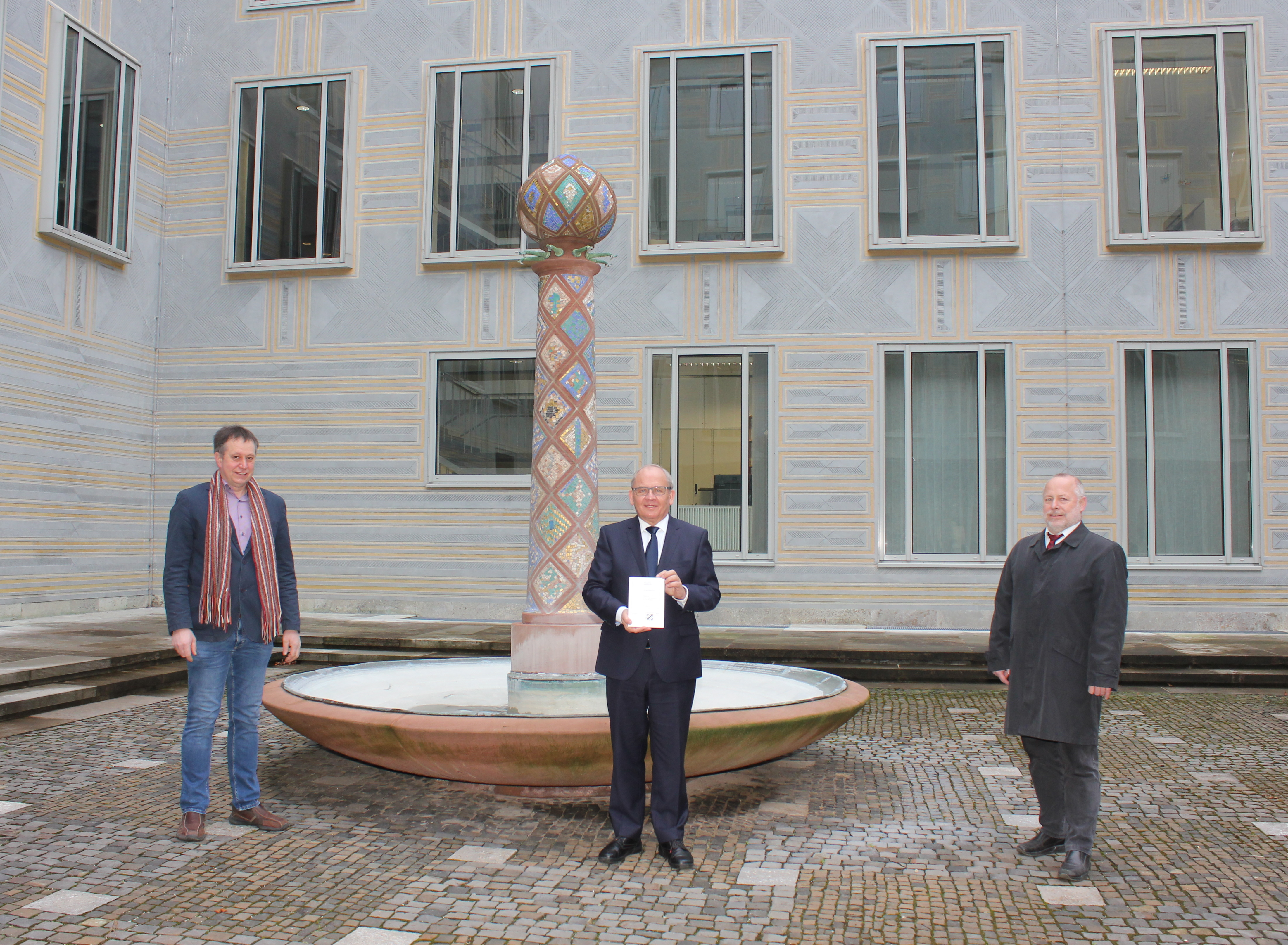 Anlage: 1 Foto (Foto: Johannes Hardenacke, Regierung von Unterfranken). Bildunterschrift: Integrierter Pflanzenbau, bei der Übergabe des aktuellen Versuchsberichts 2020 (von rechts): Harald Blankart, Behördenleiter des Amtes für Ernährung, Landwirtschaft und Forsten in Würzburg, Regierungspräsident Dr. Eugen Ehmann und Jürgen Dietrich, 1. Vorsitzender des Erzeugerrings für landwirtschaftliche pflanzliche Qualitätsprodukte e.V., Würzburg)