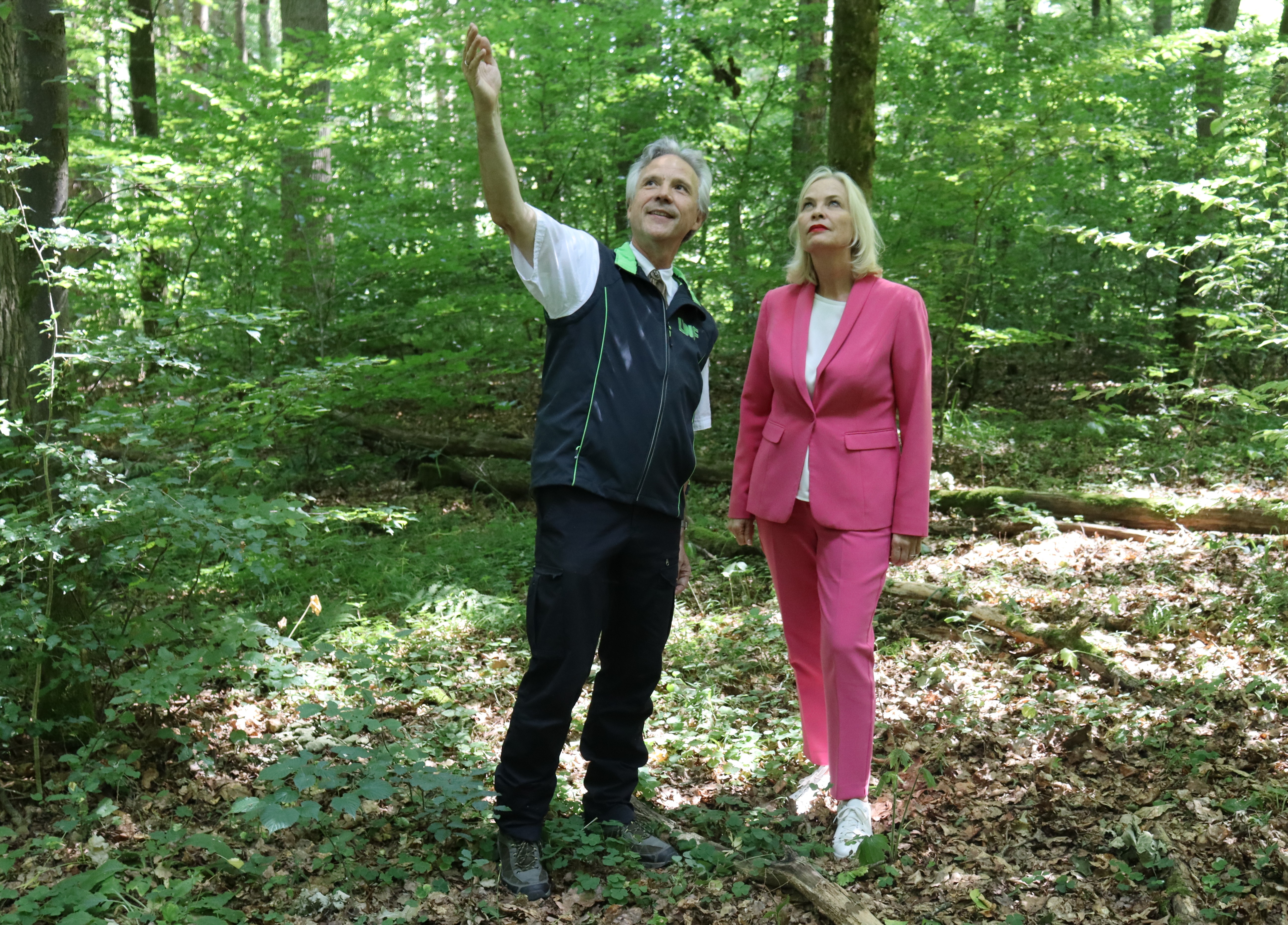 Anlage: 1 Bild (Foto: Alexander Warkotsch, Regierung von Unterfranken). Regierungspräsidentin Dr. Susanne Weizendörfer (rechts) und Präsident der Bayerischen Landesanstalt für Wald und Forstwirtschaft Dr. Peter Pröbstle (links) bei der Präsentation der Ergebnisse zur Bundeswaldinventur.