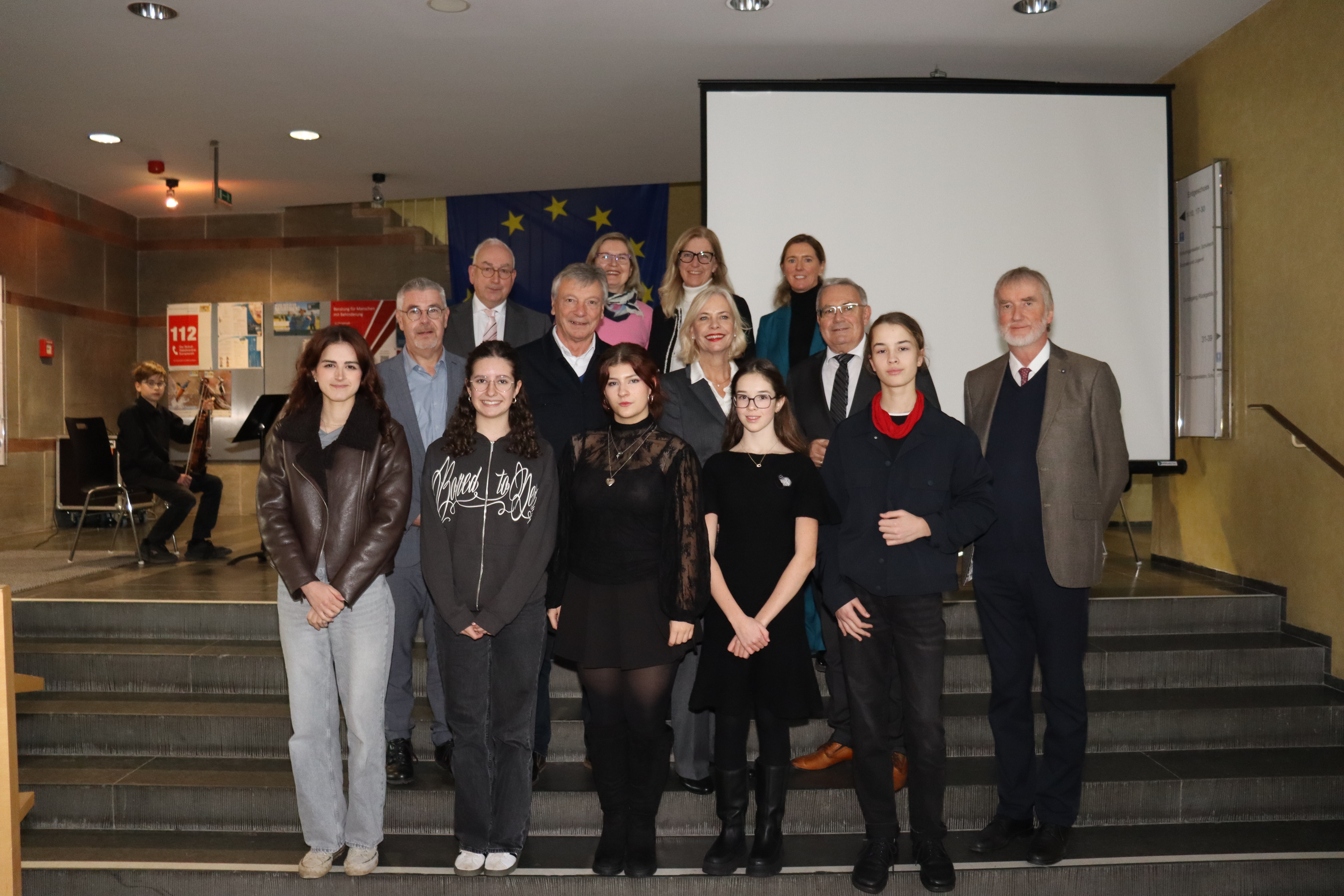 Nach der Begrüßung durch den Bezirksschulbeauftragten der Europa-Union, Georg Fath, waren die Grußworte von Regierungspräsidentin Dr. Susanne Weizendörfer von Bezirkstagspräsident Stefan Funk zu hören. Den Preisträgerinnen und Preisträgern, genauso auch den begleitenden Lehrkräften und unterstützenden Erziehungsberechtigten, wurde Dank ausgesprochen und auf die Bedeutsamkeit des Themas gerade in der aktuellen Zeit hingewiesen. Die musikalische Gestaltung übernahm ein Streichquartett bestehend aus Schülerinnen und Schülern des Wirsberg- und Grünewald-Gymnasiums.